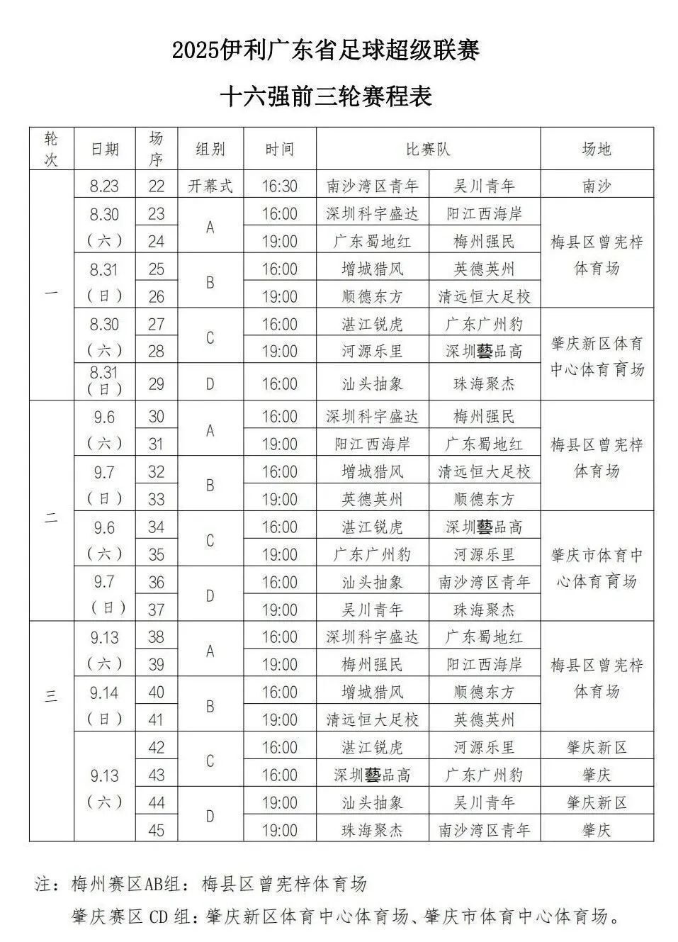 揭幕战!南沙湾区青年队vs吴川青年队!2025广东省超16强分组及赛程公布→